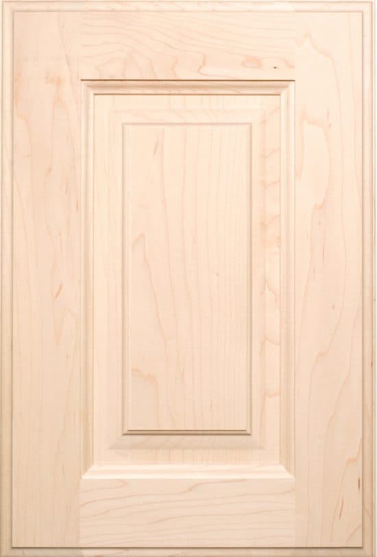 Solid material 5-piece mitered frame door, 3/4″ (19mm) thick, finger jointed, glued and pinned at all frame joints. Solid raised panel